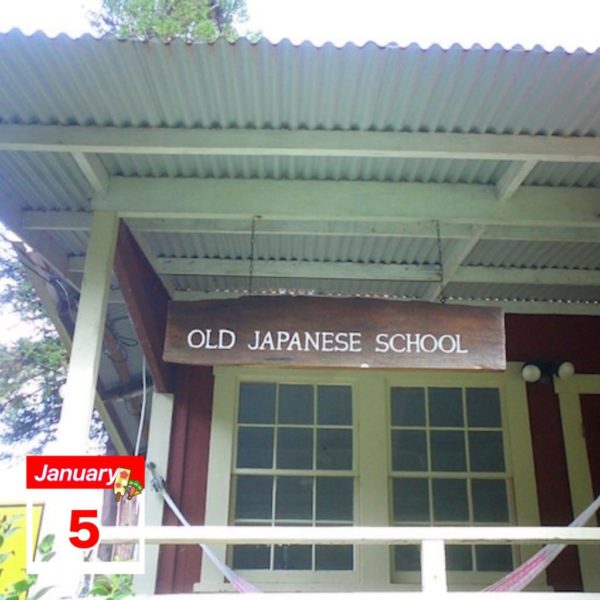【ハワイ島ボルケーノにある旧日本語学校。今は使われていませんが、ハワイと日本のつながりを感じさせてくれました】